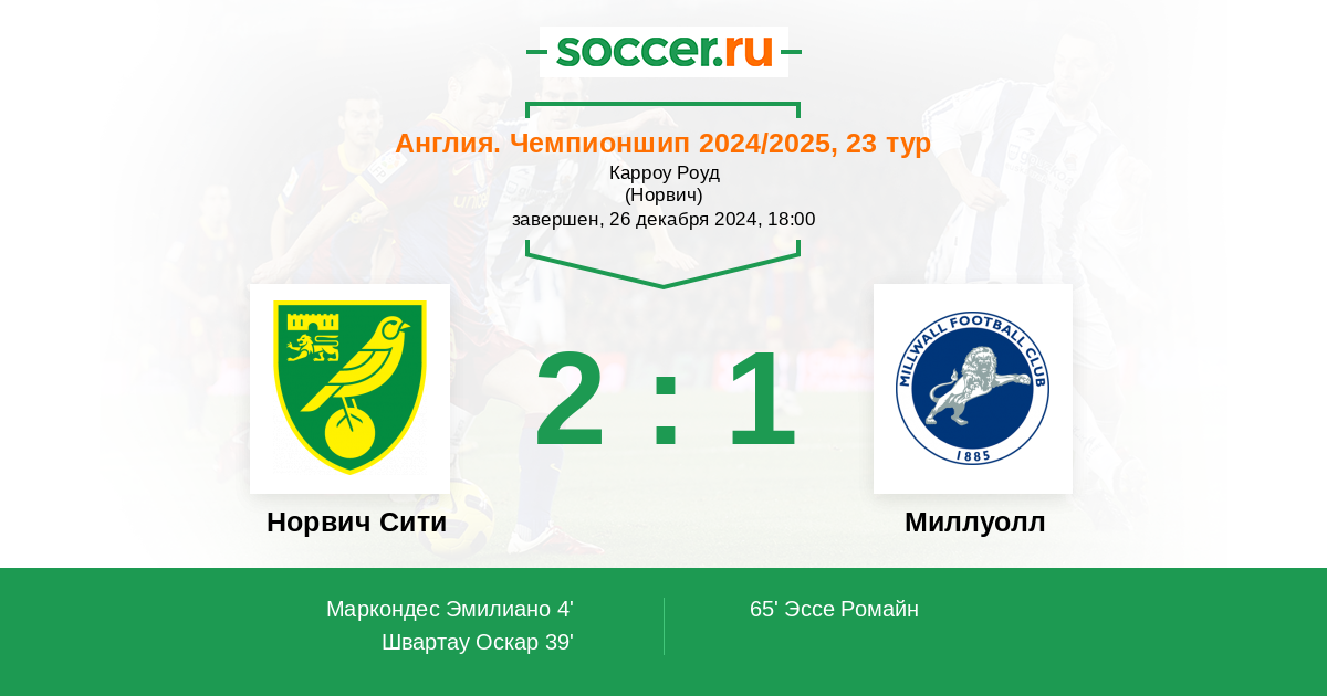 Норвич Сити - Миллуолл: обзор матча 26 декабря 2024