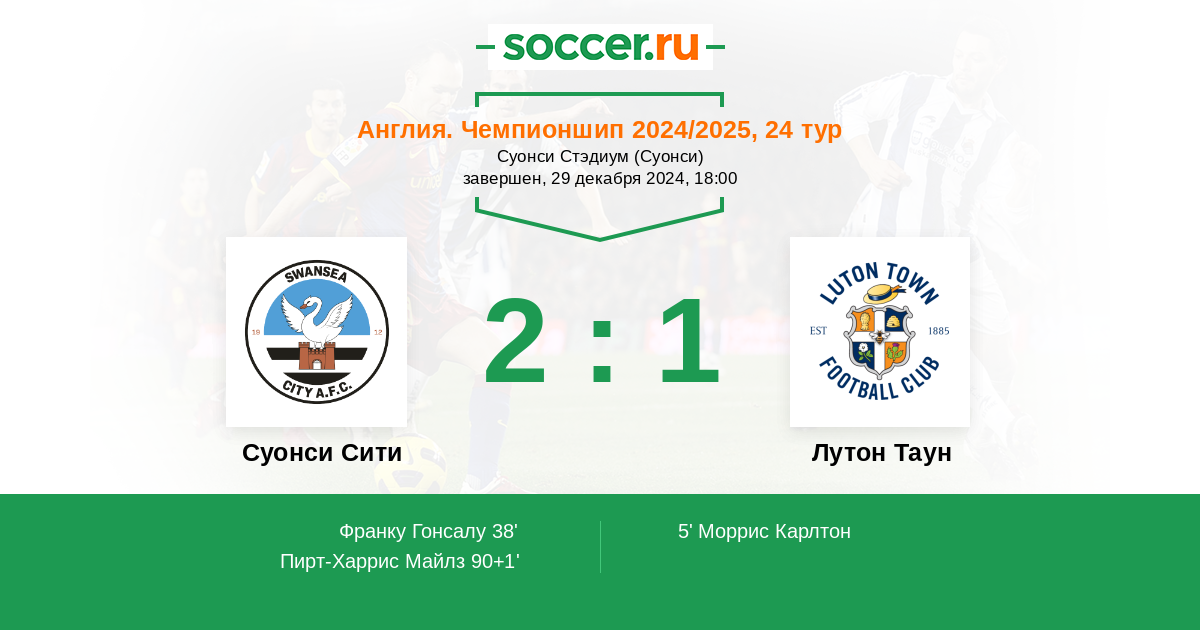 Суонси Сити - Лутон Таун: обзор матча 29 декабря 2024