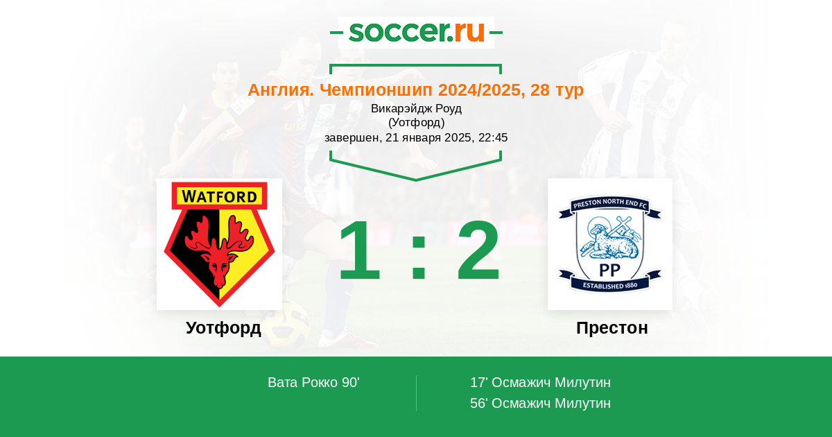 Уотфорд - Престон: обзор матча 21 января 2025