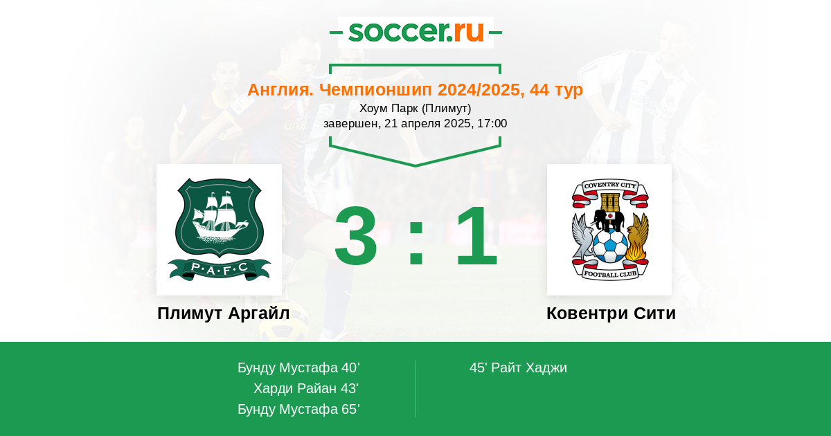 Плимут Аргайл - Ковентри Сити: обзор матча 21 апреля 2025
