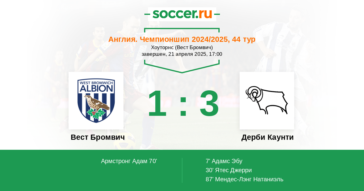 Вест Бромвич - Дерби Каунти: обзор матча 21 апреля 2025