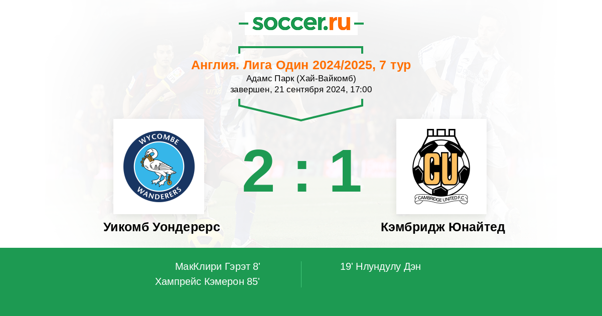 Уикомб Уондерерс - Кэмбридж Юнайтед: обзор матча 21 сентября 2024