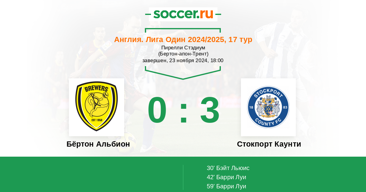 Бёртон Альбион - Стокпорт Каунти: обзор матча 23 ноября 2024