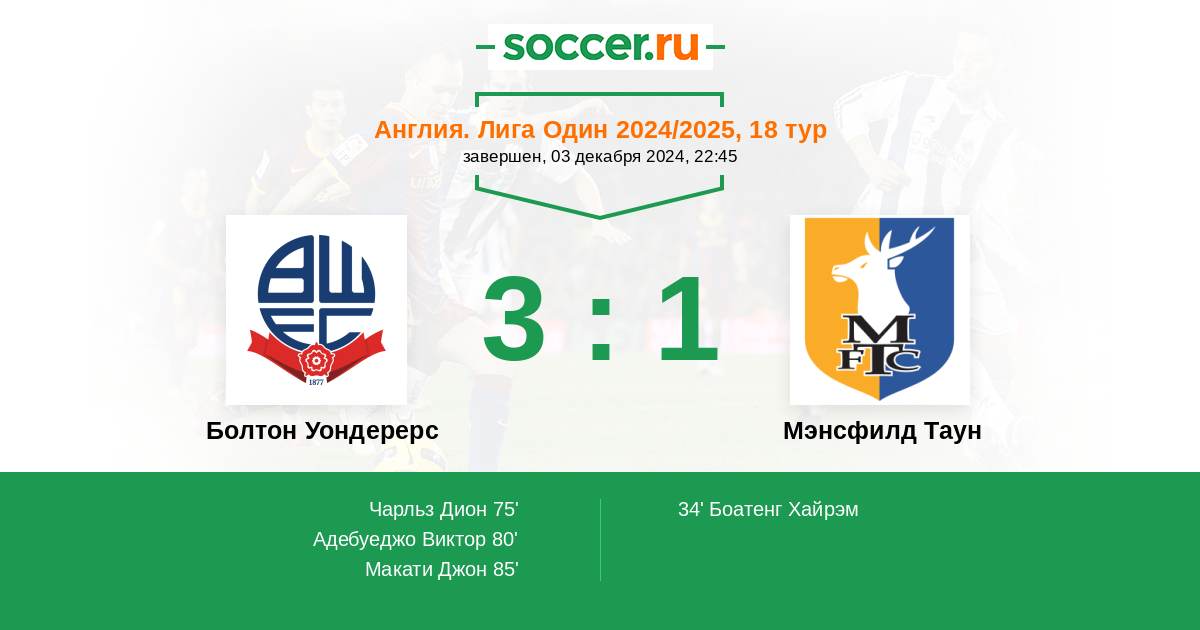 Болтон Уондерерс - Мэнсфилд Таун: обзор матча 3 декабря 2024