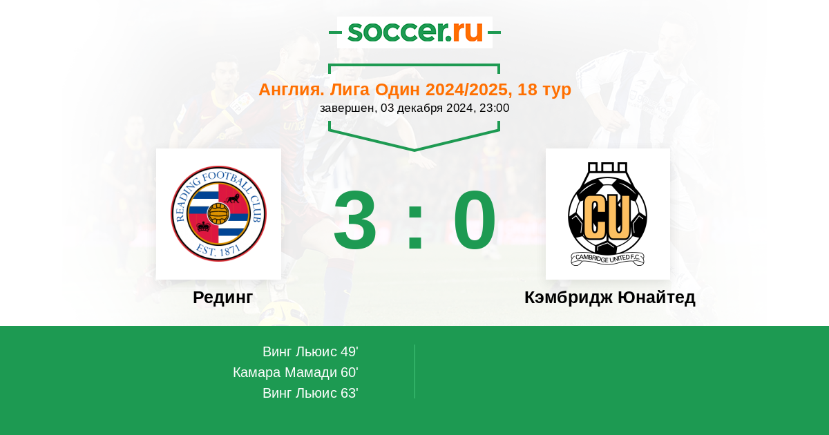 Рединг - Кэмбридж Юнайтед: обзор матча 3 декабря 2024