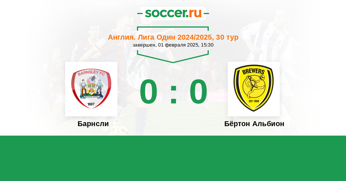 Барнсли - Бёртон Альбион: обзор матча 1 февраля 2025