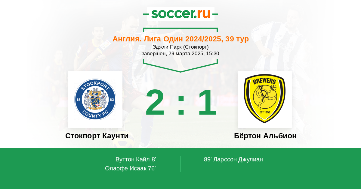Стокпорт Каунти - Бёртон Альбион: обзор матча 29 марта 2025