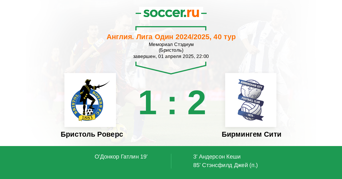 Бристоль Роверс - Бирмингем Сити: обзор матча 1 апреля 2025