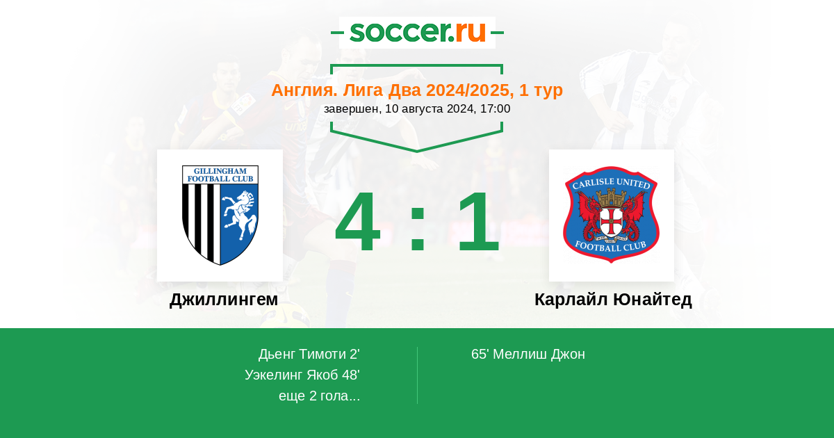 Джиллингем - Карлайл Юнайтед: обзор матча 10 августа 2024