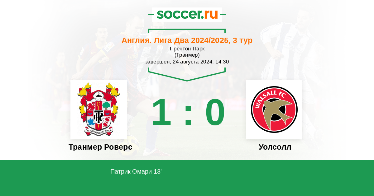 Транмер Роверс - Уолсолл: обзор матча 24 августа 2024