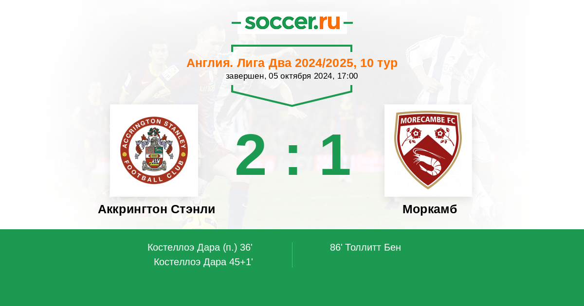 Аккрингтон Стэнли - Моркамб: обзор матча 5 октября 2024
