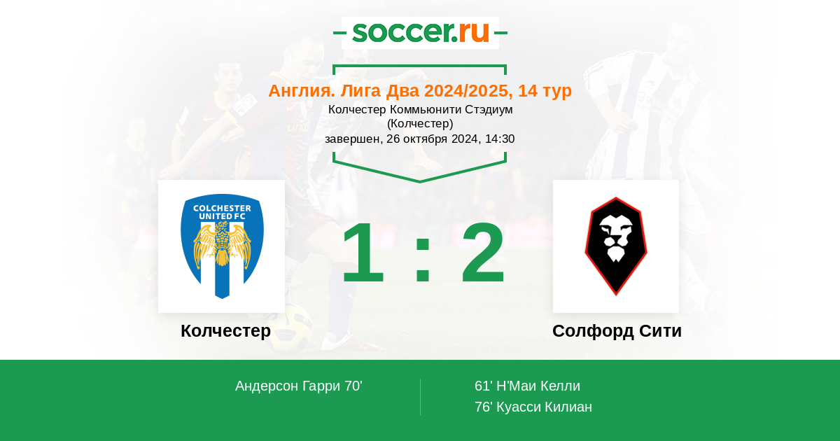 Колчестер - Солфорд Сити: обзор матча 26 октября 2024
