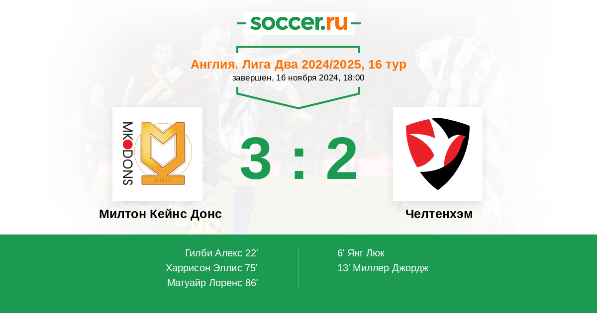 Милтон Кейнс Донс - Челтенхэм: обзор матча 16 ноября 2024
