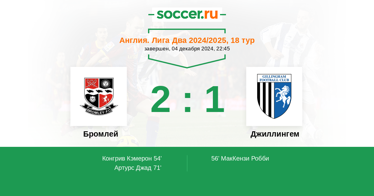 Бромлей - Джиллингем: обзор матча 4 декабря 2024
