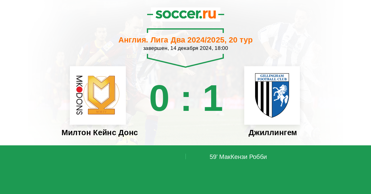 Милтон Кейнс Донс - Джиллингем: обзор матча 14 декабря 2024