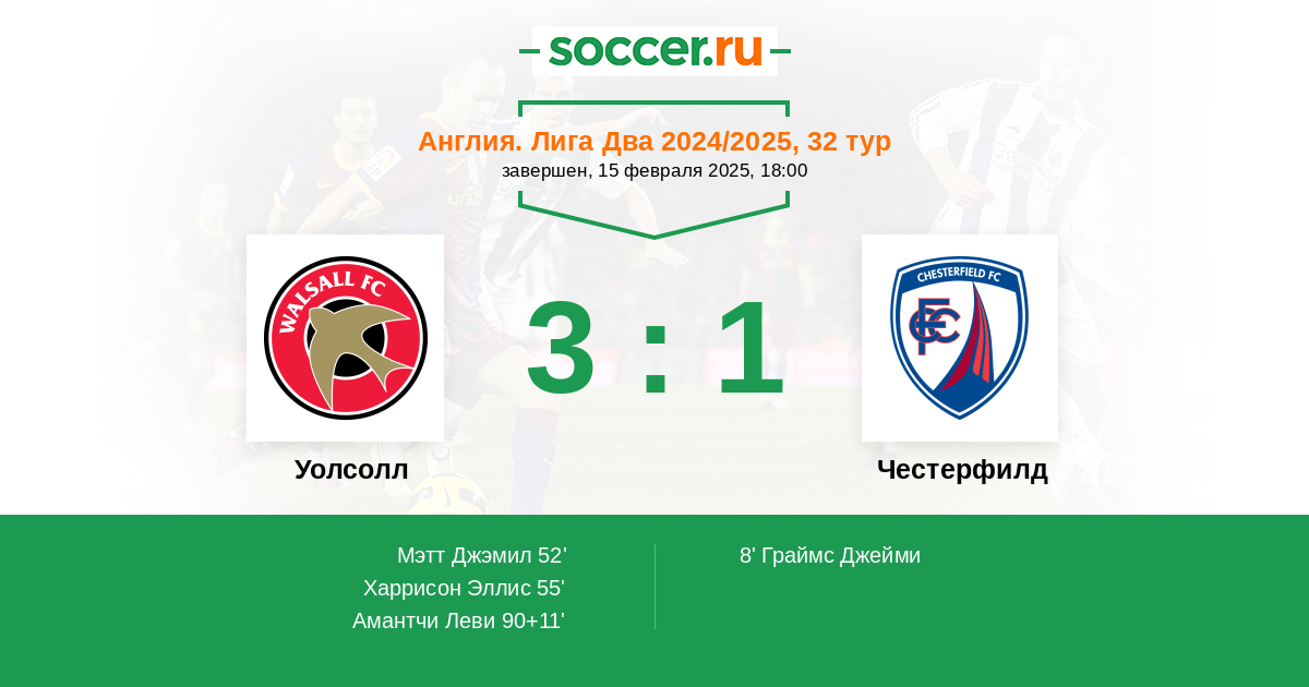 Уолсолл - Честерфилд: обзор матча 15 февраля 2025