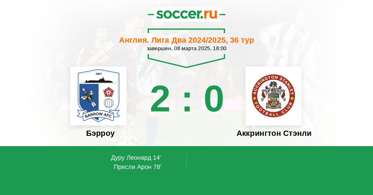 Бэрроу - Аккрингтон Стэнли: обзор матча 8 марта 2025