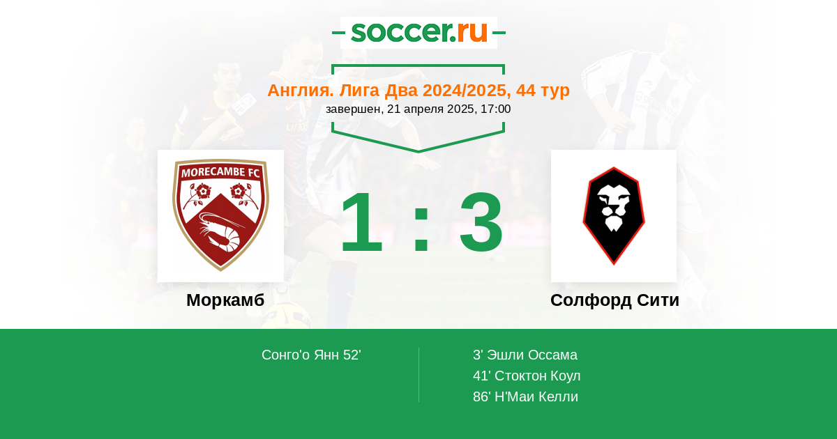 Моркамб - Солфорд Сити: обзор матча 21 апреля 2025