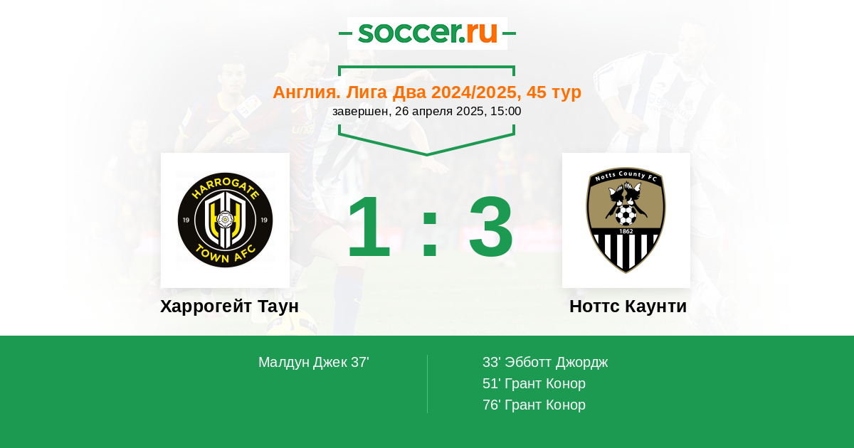 Харрогейт Таун - Ноттс Каунти: обзор матча 26 апреля 2025