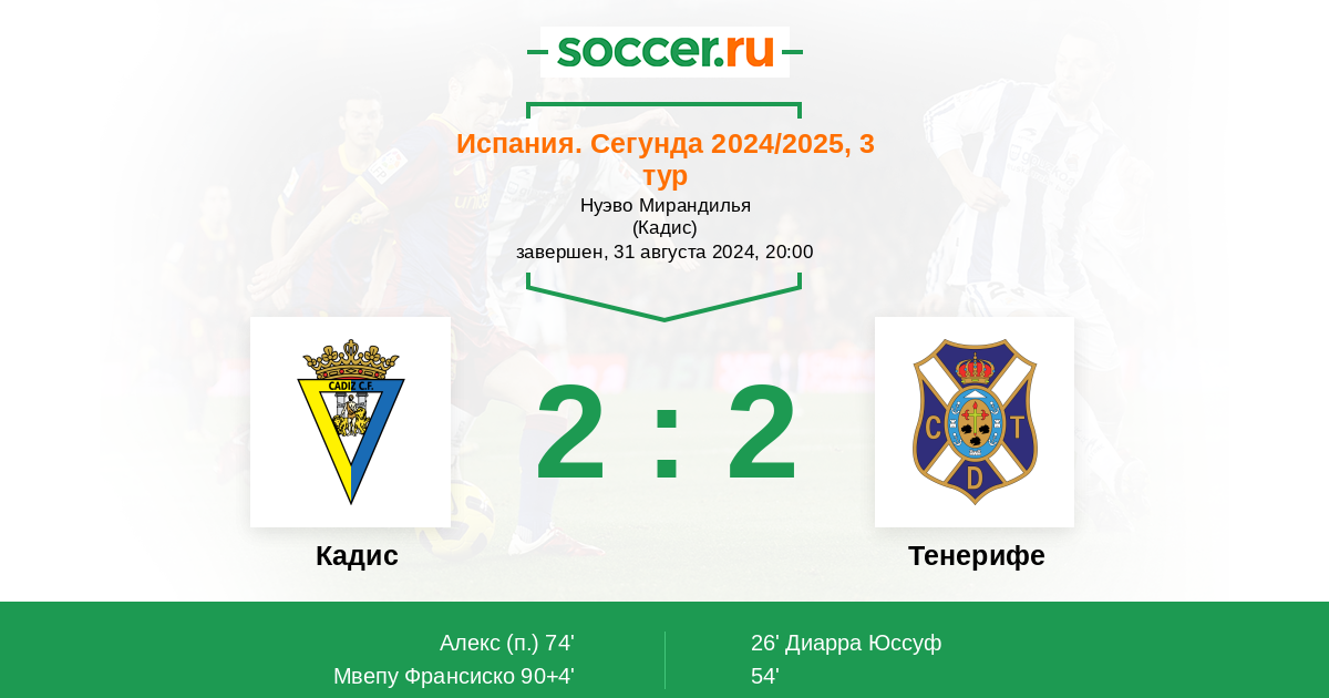 Кадис - Тенерифе: обзор матча 31 августа 2024