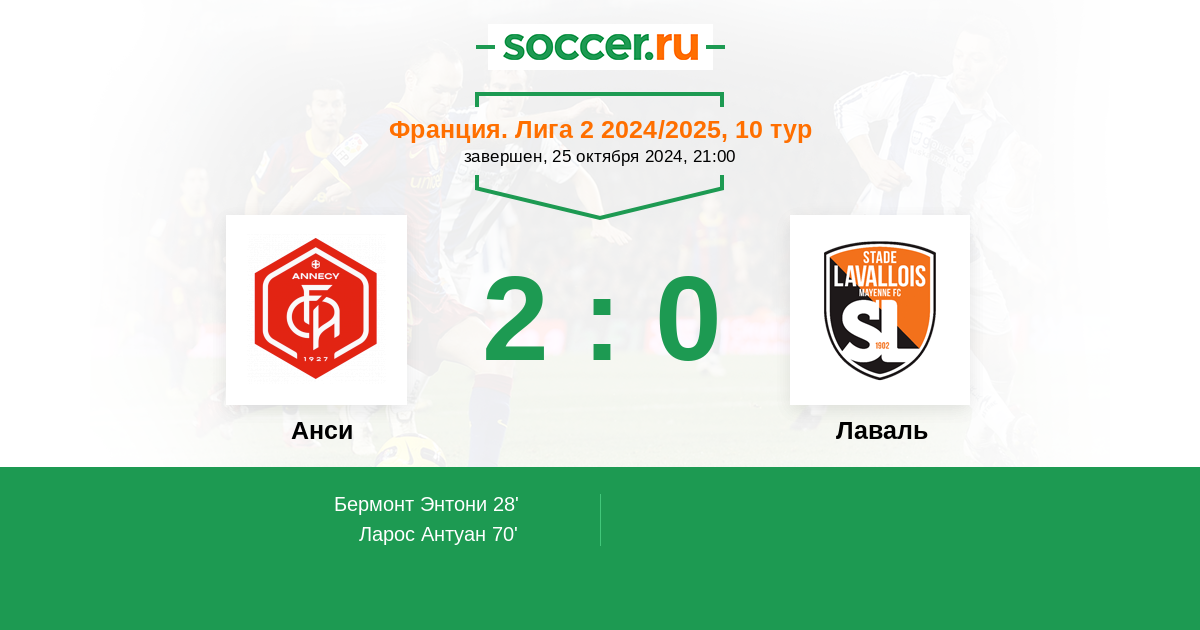 Анси - Лаваль: обзор матча 25 октября 2024