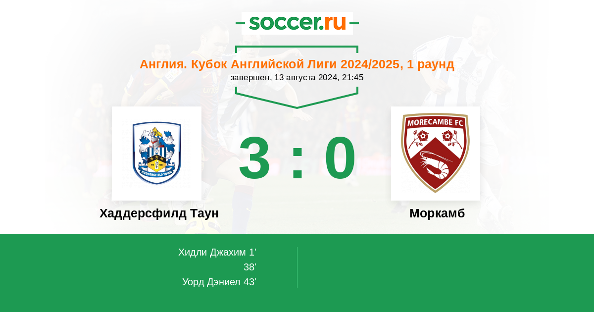 Хаддерсфилд Таун - Моркамб: обзор матча 13 августа 2024