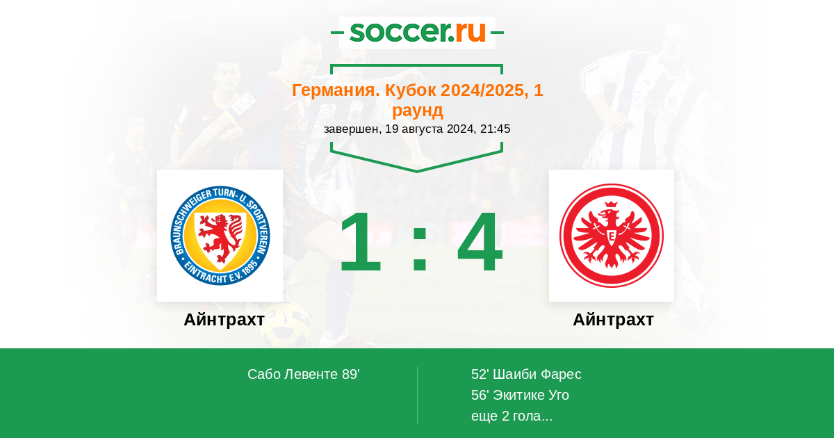 Айнтрахт Бр - Айнтрахт Ф: обзор матча 19 августа 2024
