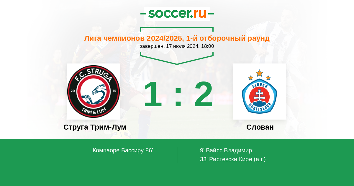 Струга Трим-Лум - Слован: обзор матча 17 июля 2024