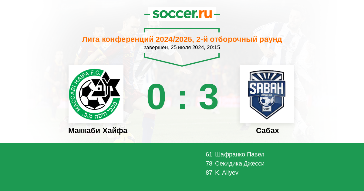 Маккаби Хайфа - Сабах: обзор матча 25 июля 2024