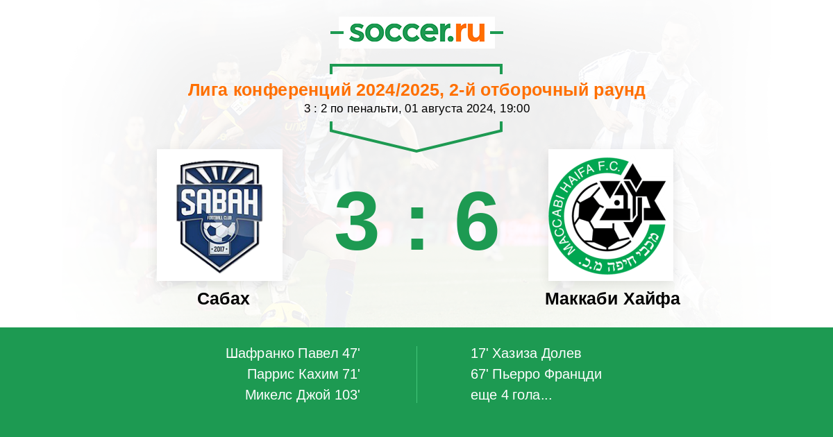 Сабах - Маккаби Хайфа: обзор матча 1 августа 2024