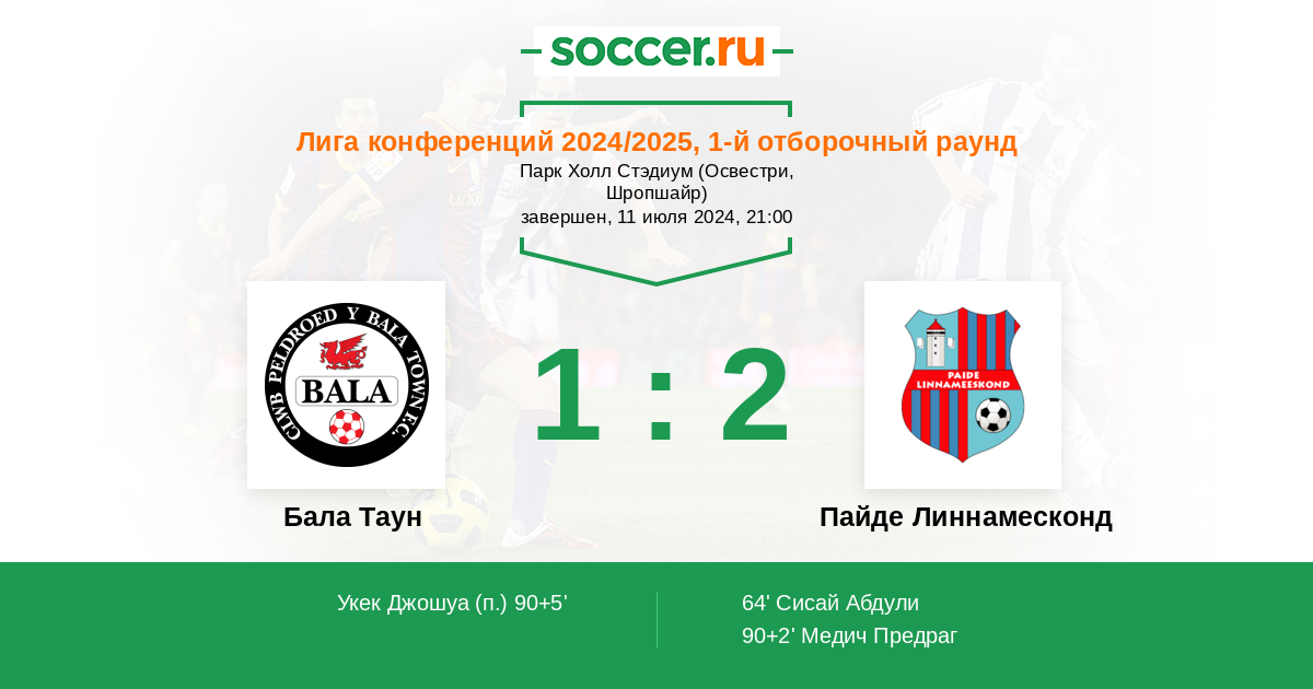 Бала Таун - Пайде Линнамесконд: обзор матча 11 июля 2024