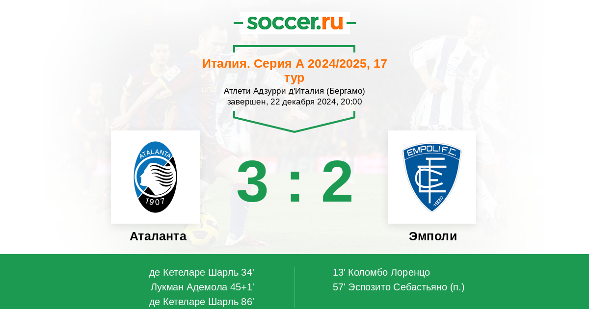 Аталанта - Эмполи: обзор матча 22 декабря 2024