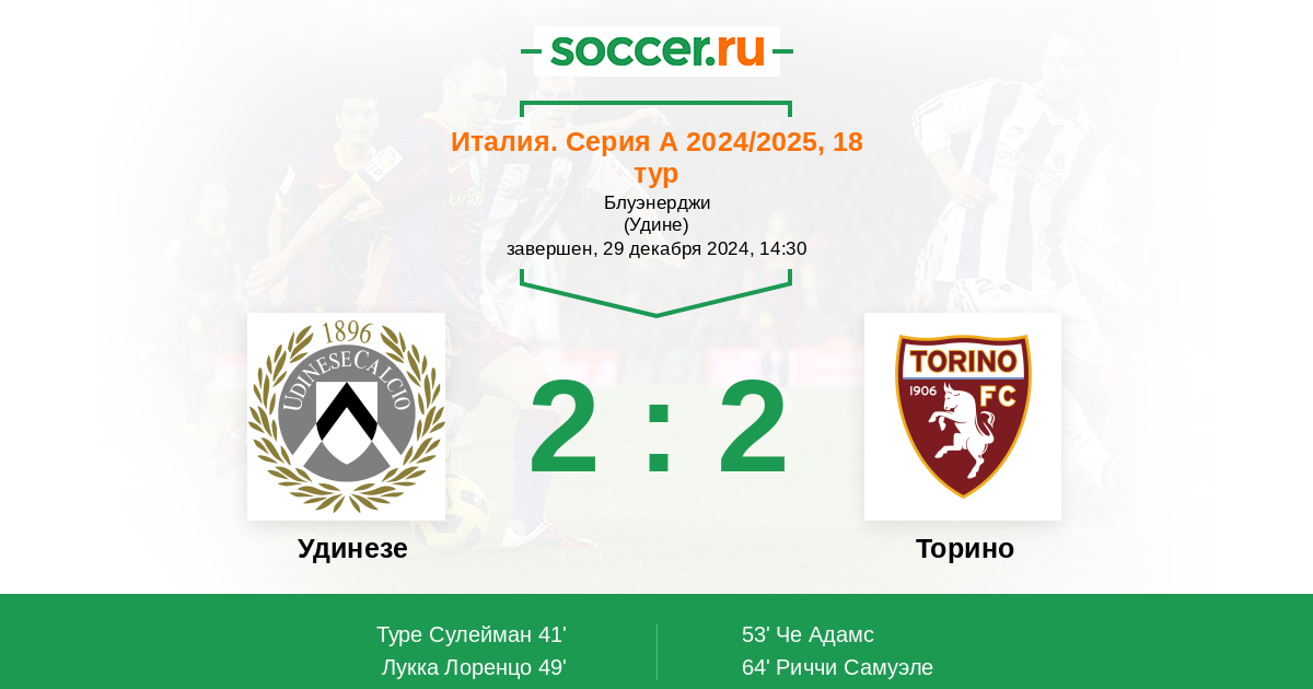 Удинезе - Торино: обзор матча 29 декабря 2024