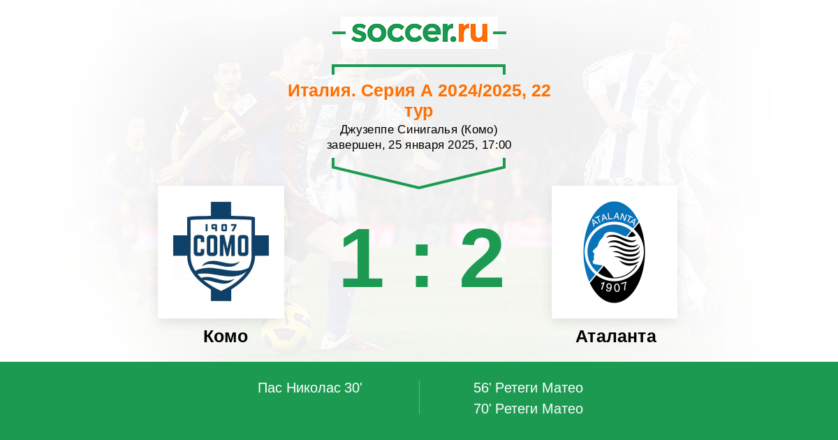 Комо - Аталанта: обзор матча 25 января 2025