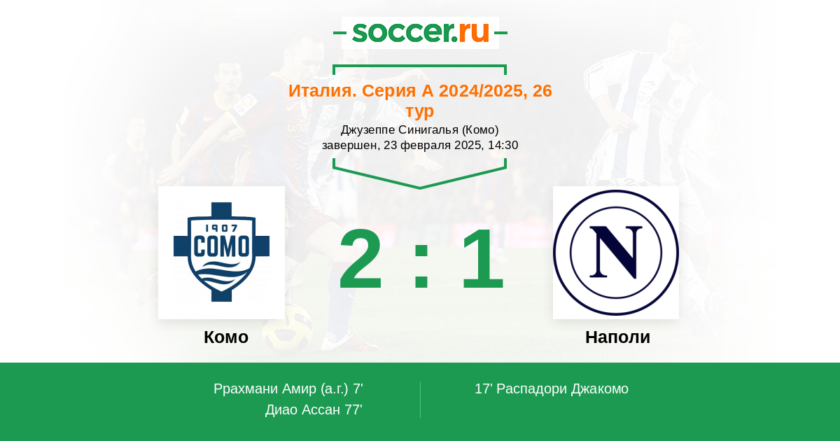 Комо - Наполи: обзор матча 23 февраля 2025