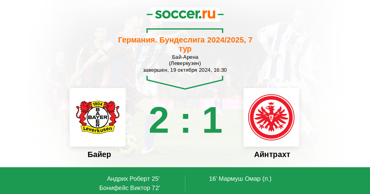 Байер - Айнтрахт: обзор матча 19 октября 2024