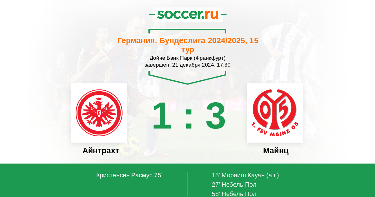 Айнтрахт - Майнц: обзор матча 21 декабря 2024