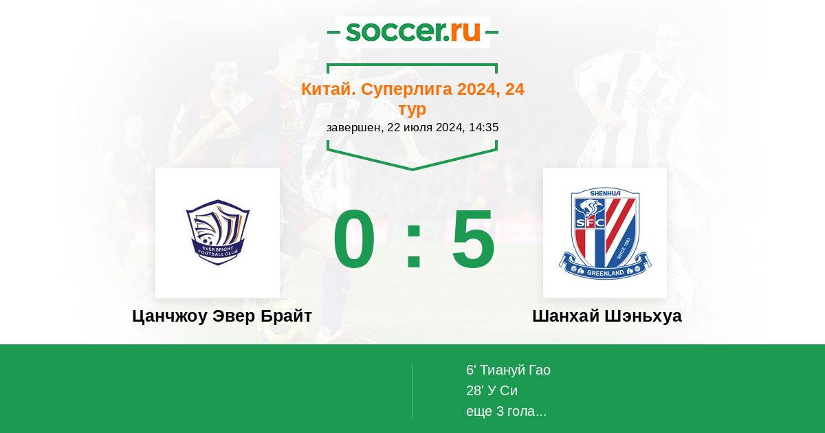 Цанчжоу Эвер Брайт - Шанхай Шэньхуа: обзор матча 22 июля 2024