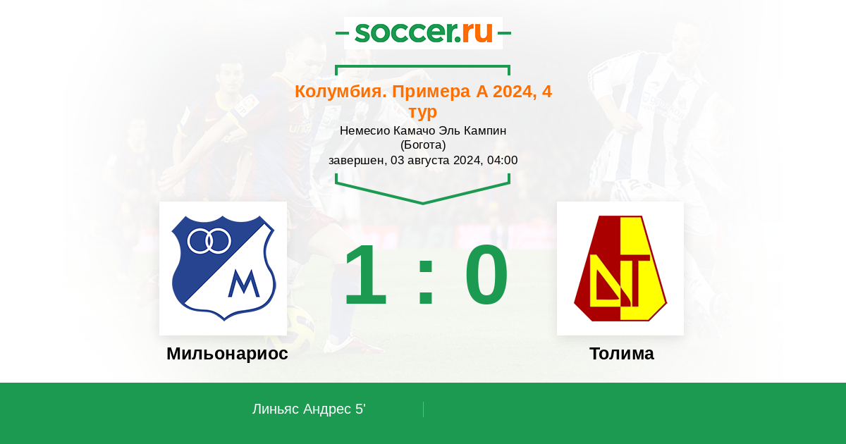 Мильонариос - Толима: обзор матча 3 августа 2024