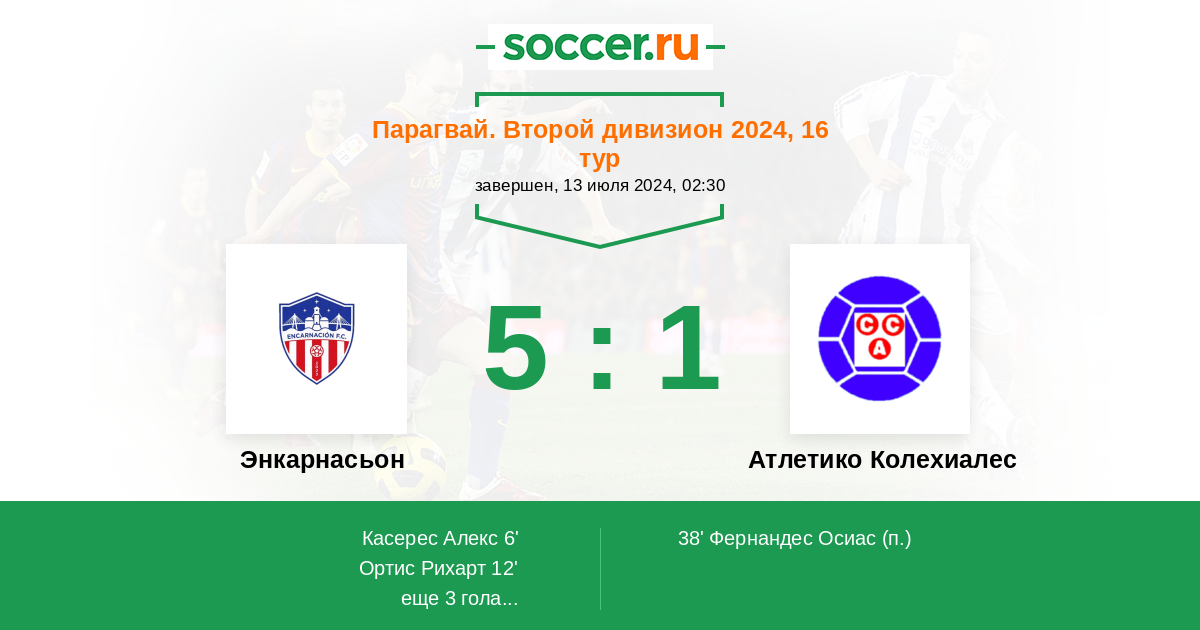 Энкарнасьон - Атлетико Колехиалес: обзор матча 13 июля 2024