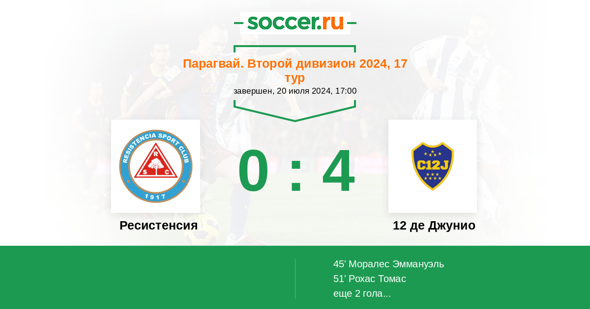 Ресистенсия - 12 де Джунио: обзор матча 20 июля 2024