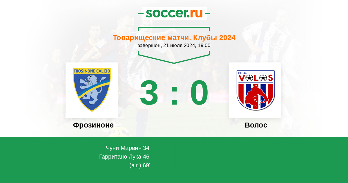 Фрозиноне - Волос: обзор матча 21 июля 2024