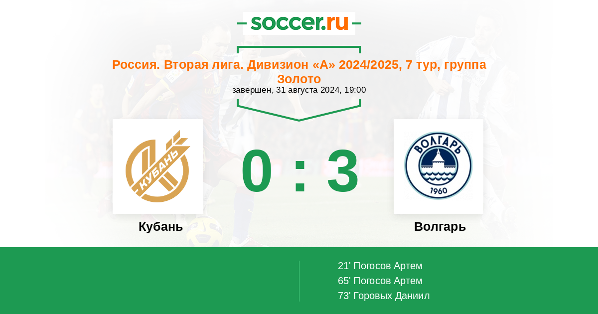 Кубань - Волгарь: обзор матча 31 августа 2024