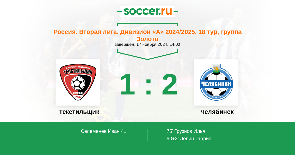 Текстильщик - Челябинск: обзор матча 17 ноября 2024