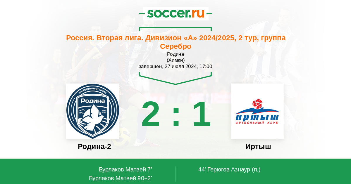 Родина-2 - Иртыш: обзор матча 27 июля 2024