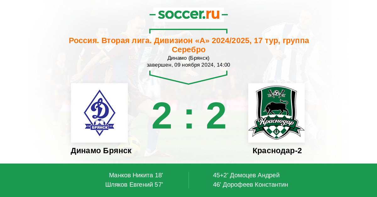 Динамо Брянск - Краснодар-2: обзор матча 9 ноября 2024