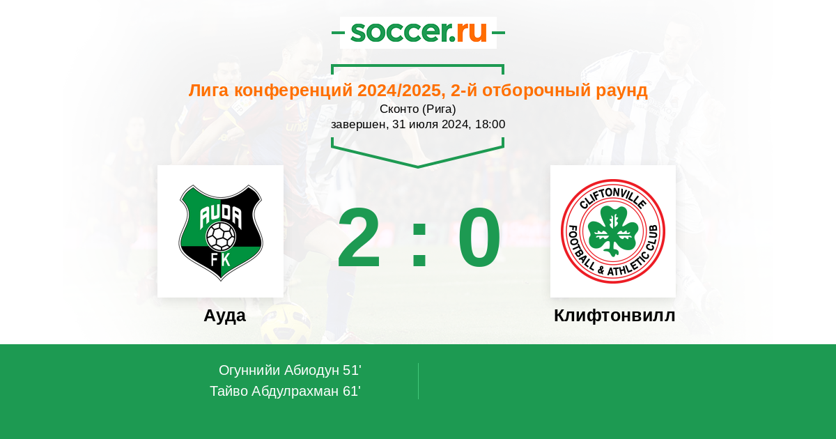 Ауда - Клифтонвилл: обзор матча 31 июля 2024