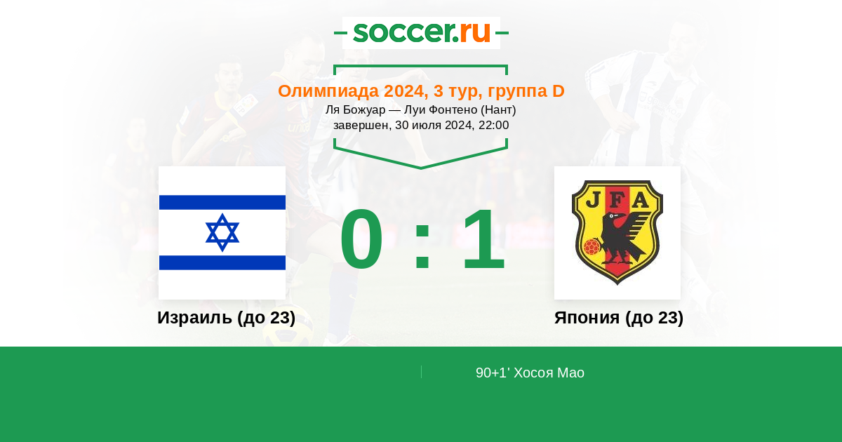 Израиль (до 23) - Япония (до 23): обзор матча 30 июля 2024