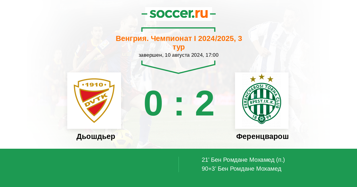 Дьошдьер - Ференцварош: обзор матча 10 августа 2024