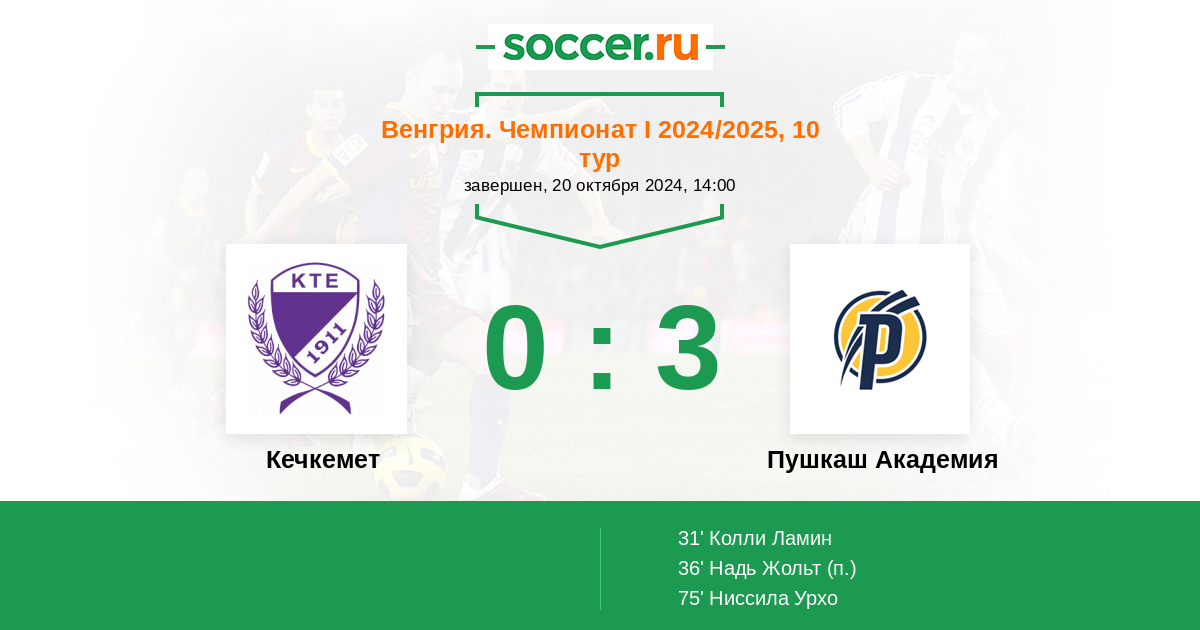 Кечкемет - Пушкаш Академия: обзор матча 20 октября 2024